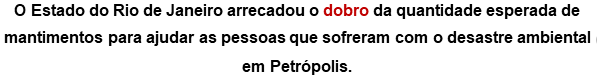 Observe que o numeral “dobro” acompanha o substantivo “quantidade”, produzindo o sentido de multiplicação.