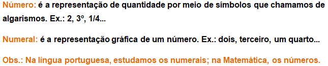 Nesse país, moram os habitantes (termos) que indicam a ideia de quantidade, ordem, multiplicação ou fração ao substantivo. Mas, antes de analisarmos os tipos de numerais, precisamos entender um fato: numeral é diferente de número.