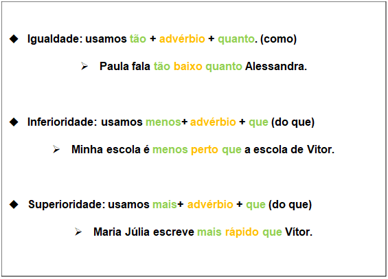 No grau comparativo, o advérbio pode indicar uma relação de igualdade, inferioridade ou superioridade.